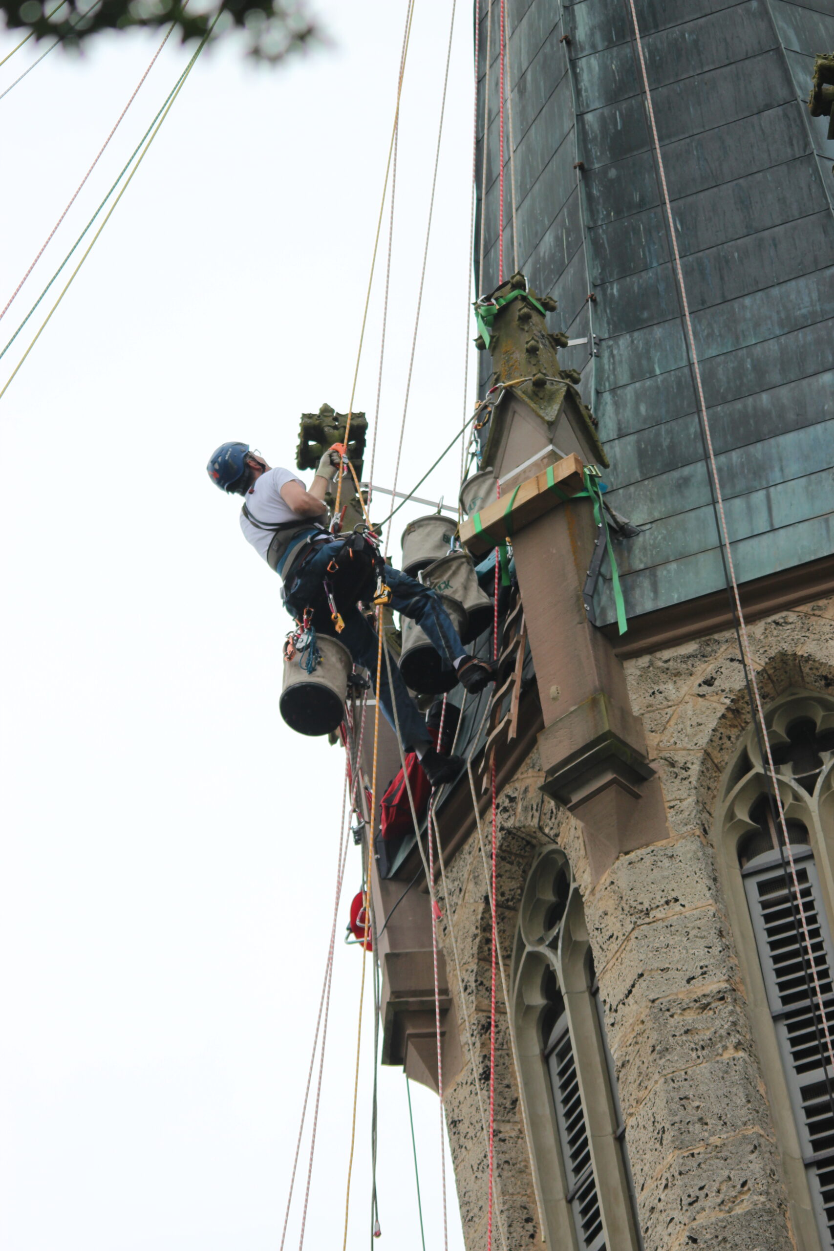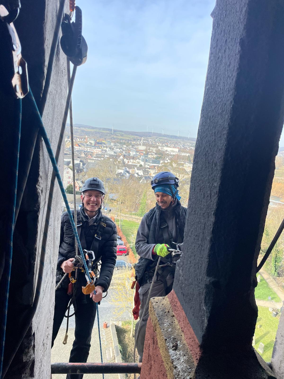 Seilgestützte Zugangstechniken ermöglichen präzises Arbeiten selbst an schwer zugänglichen Bereichen. Sie sind kosteneffizient, schonen die historische Substanz und sparen Zeit. Außerdem reduzieren sie den Materialeinsatz und tragen zur Nachhaltigkeit bei und hierdurch wird die Sanierung nicht nur effizienter, sondern ressourcenschonender.